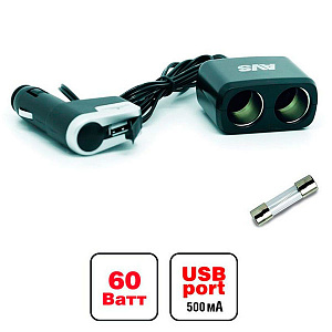 Avs Разветвитель прикуривателя на 2 устройства+USB
