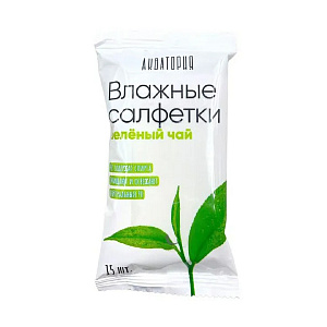 Акватория Салфетки влажные "Зеленый чай", 15 шт.
