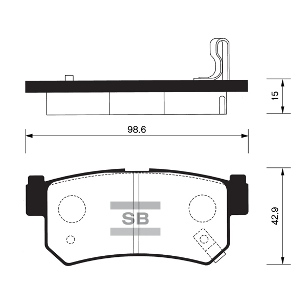 Тормозные колодки Sangsin Brake SP1151 имеют следующие характеристики: длина колодок составляет 98,6 мм, толщина - 15 мм, а ширина - 42,9 мм. В комплекте поставки вы получите 4 колодки.