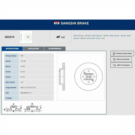 Sangsin Brake Диск тормозной SD2010 в интернет-магазине "Канистра"