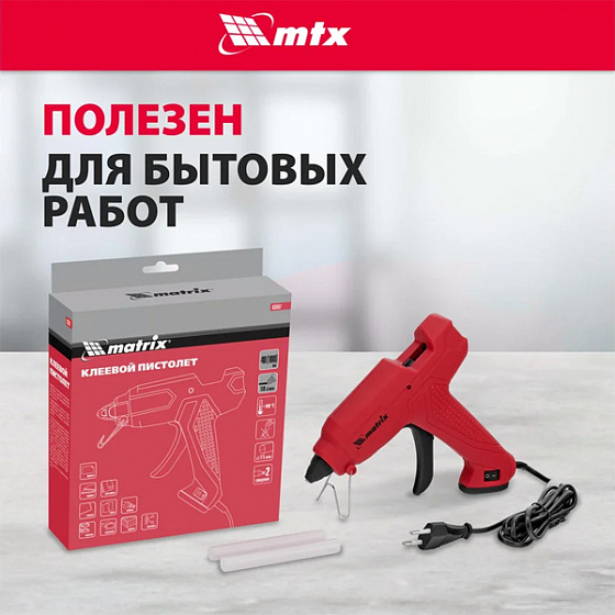 Клеевой пистолет MATRIX 93007 используется для бытовых и полупрофессиональных нужд: мелкого ремонта, упаковки товаров, фиксации деталей, создания игрушек и объемных украшений, декорирования и т.д. Пригодится отделочникам, моделистам и тем, кто занимается хенд-мейдом.