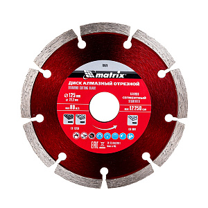 Диск алмазный отрезной сегментный Matrix, сухая резка, 125x22.2 мм 73173