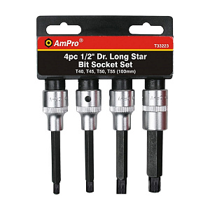 AmPro Набор головок со вставкой Torx удлиненные 1/2", T40-T55, 4 предмета T33223