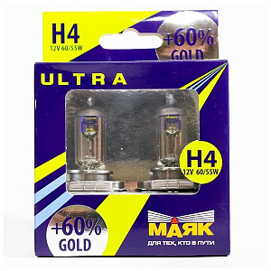 Лампа Н4 12V/60х55W "Маяк" Gold ULTRA (+60%) 2шт.